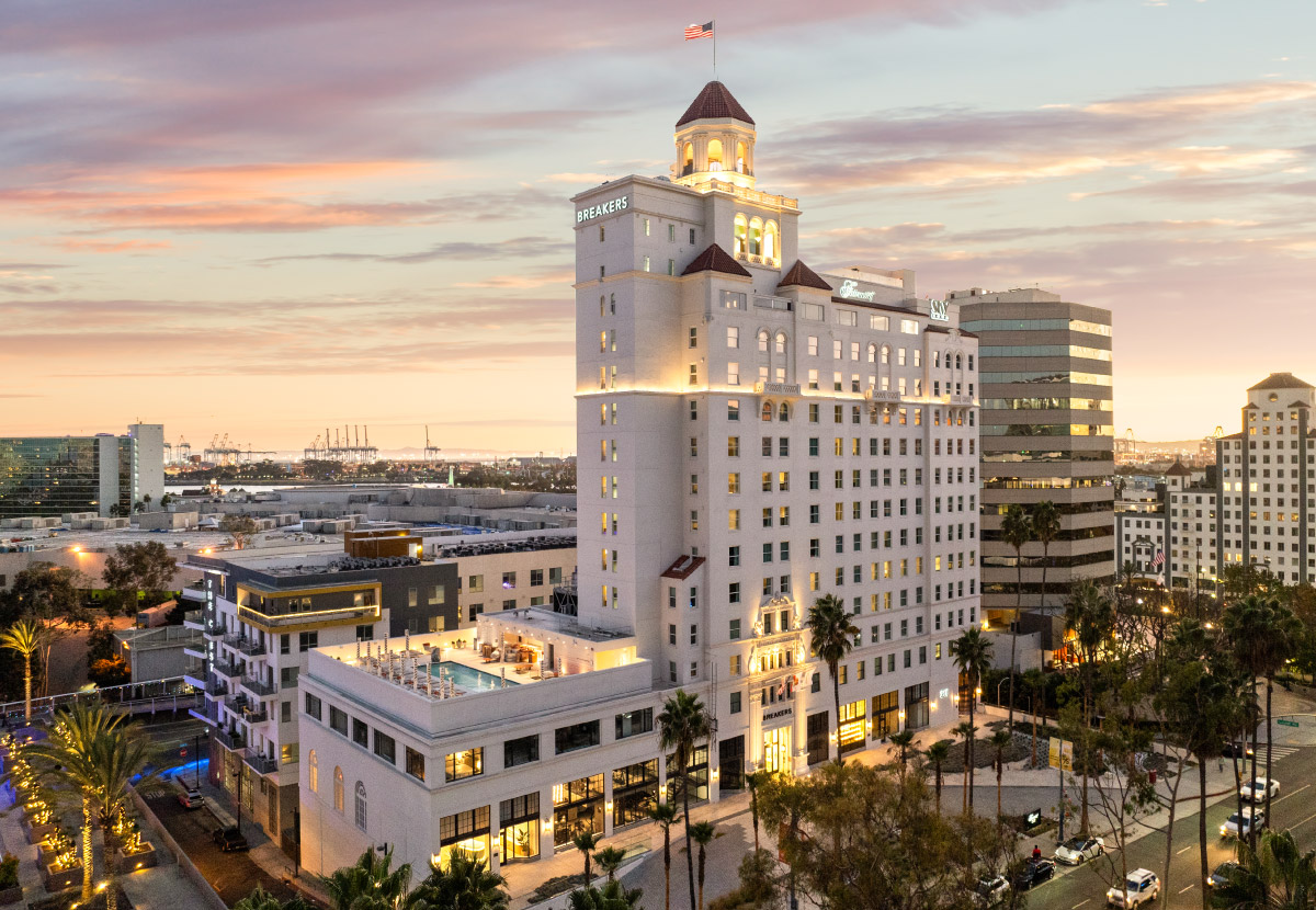 Opened in 1926, the Breakers has long been part of Long Beach’s story—from hosting Hollywood legends to sheltering the Red Cross after the 1933 earthquake. After years of decline, local developer Pacific6 and Eden For Your World led its transformation into a Fairmont property, reopening in November 2024.